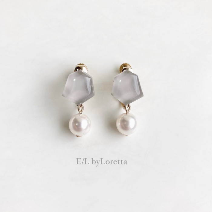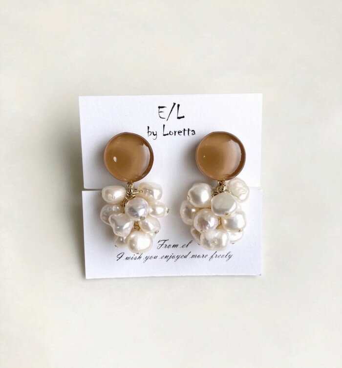Mini KAKERA pearl pierce/earring (Beige) [cc] E/L byLoretta EL エルバイロレッタ accessory アクセサリー カケラ パール ベージュ ピアス イヤリング チタン 樹脂 ねじ式 クリップ式 両耳セット ハンドメイド
