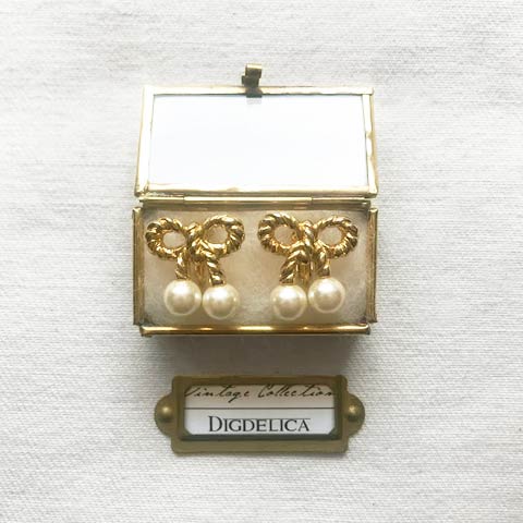【SONIARYKIEL】ソニアリキエル ヴィンテージ リボンパールイヤリングv1467【DIGDELICA】VINTAGE 中古UESD品 年代物 EARRING ディデリカ
