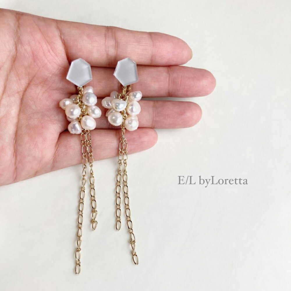Mini KAKERA 淡水パール ×chain tassel pierce/earring(Gray) [cc] E/L byLoretta EL エルバイロレッタ accessory アクセサリー カケラ 淡水パール チェーン タッセル ピアス イヤリング グレーチタン 樹脂 ねじ式 クリップ式 両耳セット ハンドメイド
