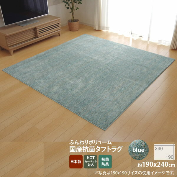 【ポイント20倍】ブルー(blue) :190×240cm ★ラグ カーペット 3畳 抗菌 防臭 防ダニ タフト 国産 ミックスカラー 【代引不可】