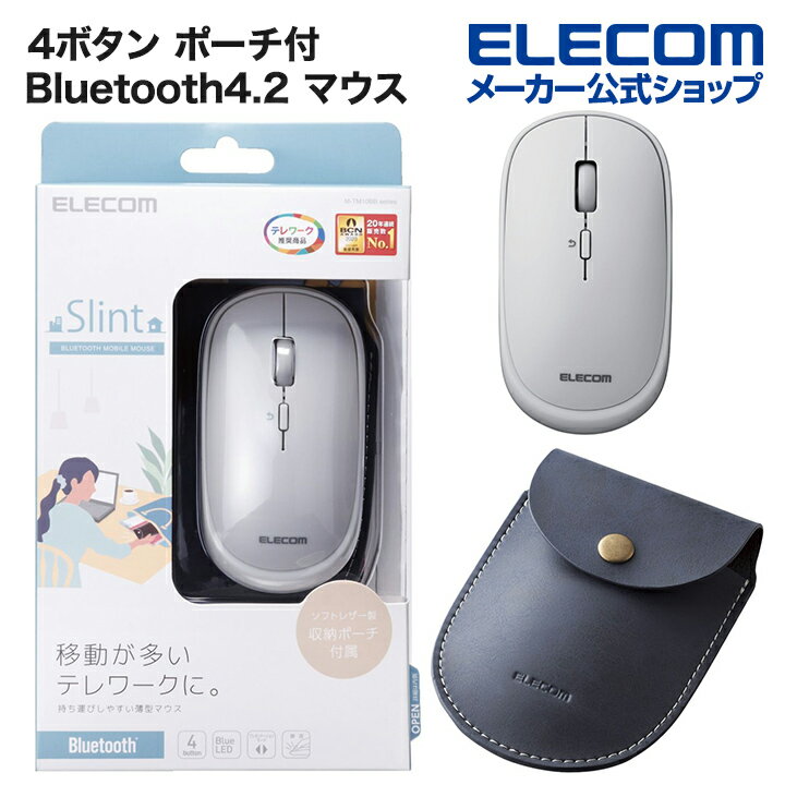 【正規代理店】 エレコム M-TM10BBGY Bluetooth4.2 マウス M-TM10シリーズ BlueLEDマウス 薄型 ブルートゥース 対応 4ボタン ポーチ付 グレー Windows11 ELECOM 6カ月保証 ワイヤレス 収納ポーチ付 ワイヤレスマウス 超薄型 テレワーク 高品質