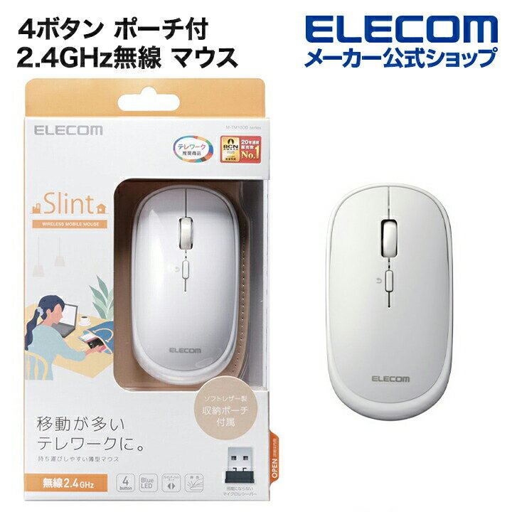 Slint ワイヤレスモバイルマウス 無線 4ボタン 収納ポーチ付 ホワイト M-TM10DBWH(1個)【エレコム(ELECOM)】