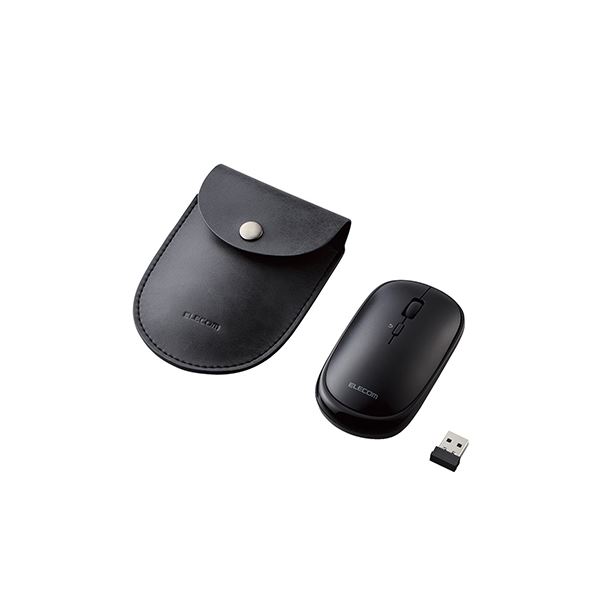 ■サイズ・色違い・関連商品■レッド■ピンク■ブルー■ブラック【当ページ】■商品内容カバンに入れて持ち運びしやすい厚み28mmの薄型マウスです。持ち運びに便利な、質感にこだわったソフトレザー製の収納ポーチが付属しています。小さな凹凸やホコリでもより正確に光が反射し、場所を選ばずに快適に使用できるBlueLEDを搭載しています。ポインタの移動速度は800/1600カウントの2段階で切り替え可能です。マウスのクリック時のカチカチ音がしない静音スイッチを採用し、音が気になる場所でも使えます。ネットの閲覧などの操作に便利な【戻る】ボタンが付いた4ボタンタイプです。無料でダウンロードできる【エレコムマウスアシスタント】を利用することで、各ボタンへの機能割り当てや、プレゼンテーションモードの使用ができます。プレゼンテーションモードを有効にすると、通常のマウスモードと、スライド送り・戻しなどを操作できるプレゼンテーションモードとを切り替えて使用できます。プレゼンテーションモードでのボタンの詳細動作、スクロールやカーソル移動の無効などをカスタマイズ可能です。2.4GHz帯を採用したワイヤレスタイプで、非磁性体で約10m、スチールデスクなど磁性体上でも約3mの範囲で使用可能です。(当社調べ)ノートパソコンのUSBポートに接続しても気にならず、装着したまま持ち運び可能な1円玉サイズのマイクロレシーバを採用しています。レシーバはマウス本体内に収納可能なので、持ち運びに便利で、レシーバを紛失する心配を軽減します。本体裏面に電源スイッチがあり、不使用時の電池の消耗を防止できます。電池の交換時期をお知らせする電池残量表示ランプを搭載しています。モバイルに最適な薄型設計のMサイズです。左右対称で、右利き・左利きを問わず使いやすいシンメトリーデザインを採用しています。■商品スペック●インターフェイス:USB●コネクタ形状:USB(A)オス●対応OS:Windows 10、Windows 8.1、Windows7、macOS Catalina(10.15) ※各OSの最新バージョンへのアップデートや、サービスパックのインストールが必要になる場合があります。●分解能:800/1600カウント(切り替え可能)●通信方式:GFSK方式●電波周波数:2.4GHz帯●電波到達距離:磁性体(鉄の机など)の上で使用する場合:3m、非磁性体(木の机など)の上で使用する場合:10m ※当社環境でのテスト値であり保証値ではありません。●読取り方式:光学センサー方式●LED色:ブルー●ボタン数:4個 ※ホイールボタン含む●ホイール数:1個●レシーバ収納:〇●連続動作時間:約330時間●連続待機時間:約833日●想定電池使用期間:約628日 ※1日8時間のパソコン操作中5%をマウス操作に割り当てた場合●電源(本体):単3形アルカリ乾電池、単3形マンガン乾電池、単3形ニッケル水素電池のいずれか1本●カラー:ブラック●外形寸法(マウス本体):幅55.5mm ×奥行103.8 mm ×高さ28.0mm●サイズ分類:Mサイズ●質量(マウス本体):約66g ※電池含む●外形寸法(レシーバ):約幅15.0×奥行き18.0×高さ6.0mm●質量(レシーバ):約2g●付属品:動作確認用単3形アルカリ乾電池×1、収納ポーチ×1●保証期間:6カ月■送料・配送についての注意事項●本商品の出荷目安は【4 - 6営業日 ※土日・祝除く】となります。●お取り寄せ商品のため、稀にご注文入れ違い等により欠品・遅延となる場合がございます。●本商品は仕入元より配送となるため、沖縄・離島への配送はできません。【 M-TM10DBBK 】