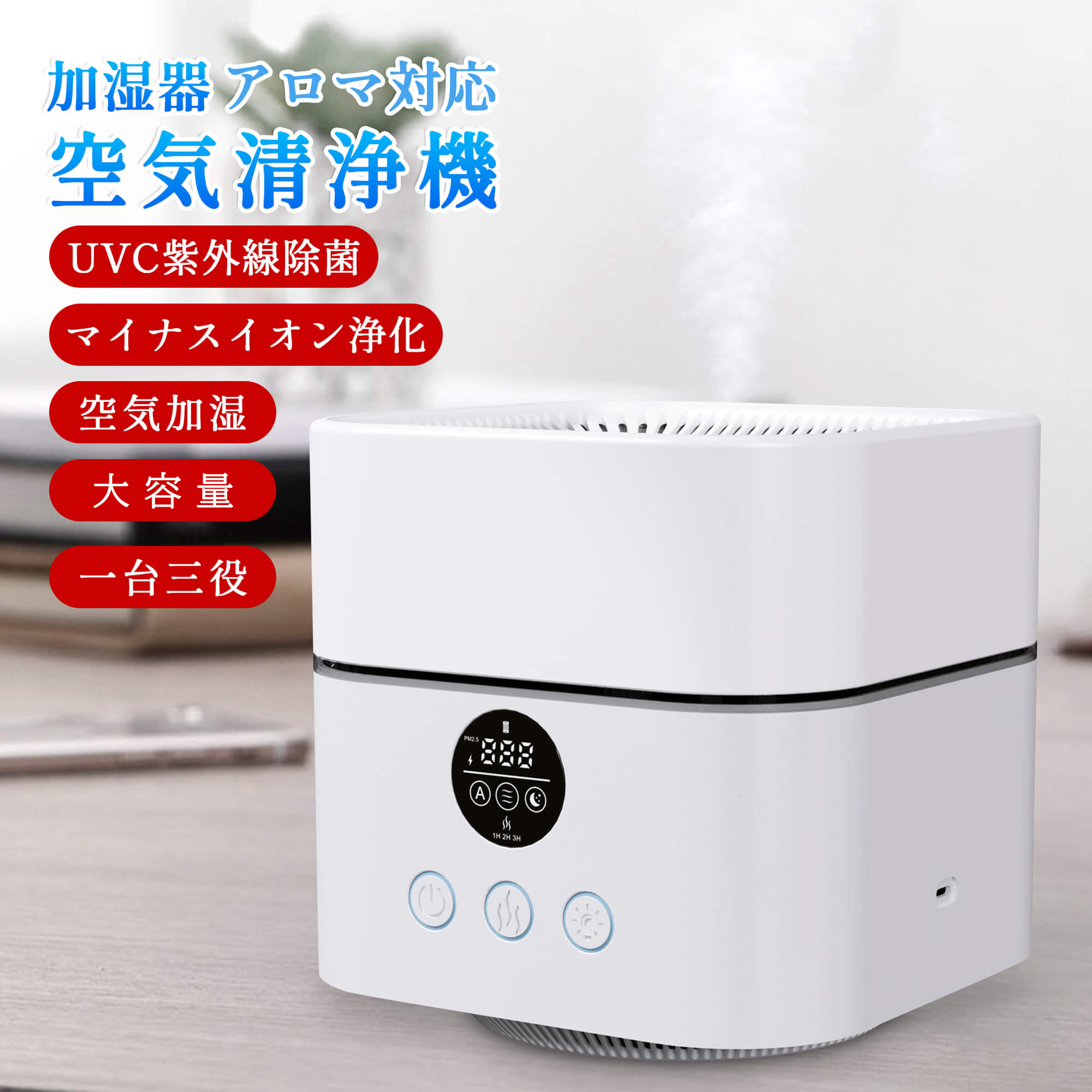 【最大2000円OFF】空気清浄機 加湿器 卓上 加湿空気清浄機 6-10畳対応 UV除菌 マイナスイオン 静音 タバコ ペット ほこり ウイルス対策 PM2.5除去 花粉対策 脱臭 Wi-Fi対応 スマホ操作 500ml大容量 タイマー付き アロマ対応 省エネ 空気質センサー 新生活