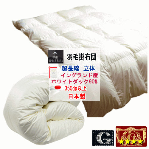 羽毛布団 掛け布団 イングランド産ホワイトダック 90% ダウン エクセルゴールドラベル 350dp以上 超長綿 綿100% 日本製【P2】