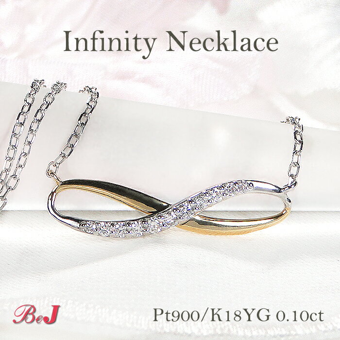 Pt900/K18YG【0.1ct】インフィニティ ダイヤモンド ネックレスプラチナ 18金 K18 18K ゴールド ダイヤ ダイア ペンダント ダイヤネックレス 可愛い 人気 おしゃれ 贈り物 代引手数料無料 送料無料 品質保証書 4月誕生石 プレゼント 無限 ∞ ジュエリー レディース