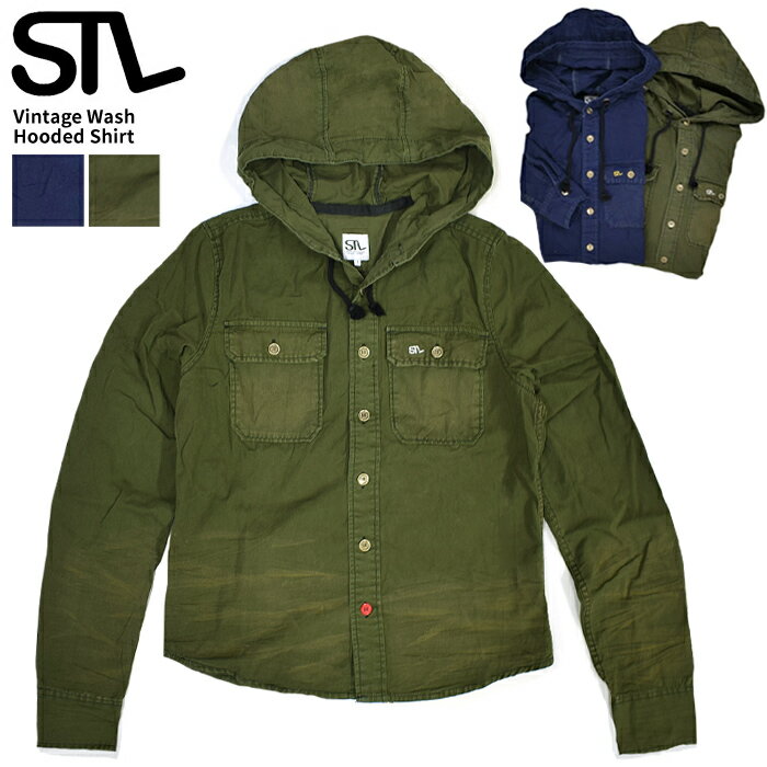 【割引クーポン配布中】 STL エスティーエル Vintage Wash Hooded Shirt ヴィンテージウォッシュ フードシャツ ミリタリーシャツ ワークシャツ 日本製 MADE IN JAPAN 【クリアランス】【RCP】