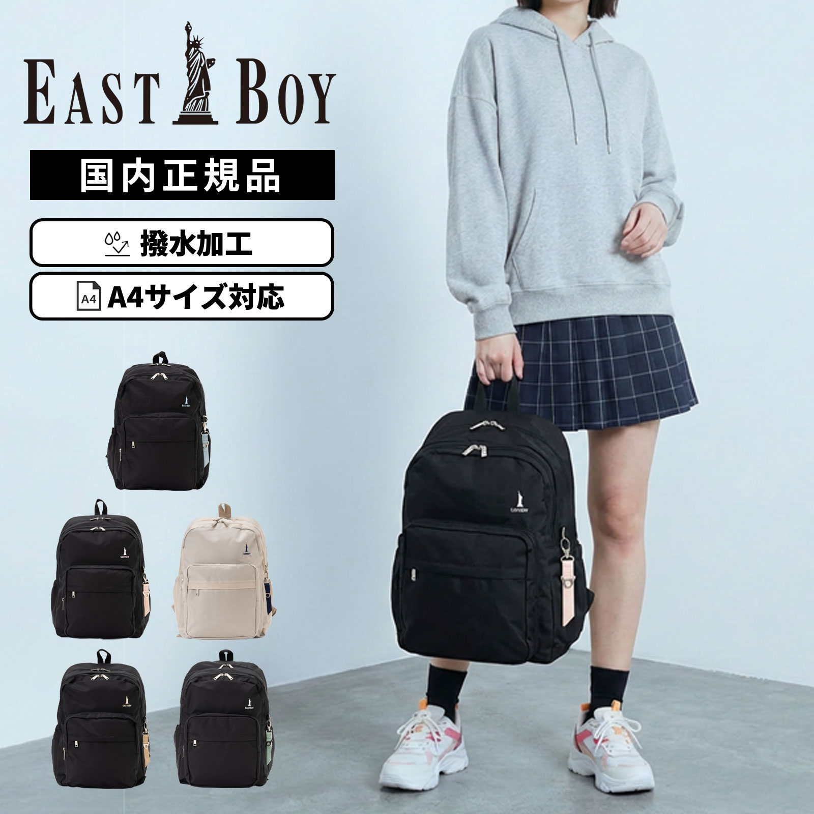 正規品 EASTBOY イーストボーイ バッグ スクールバッグ PRINTEMPS30L プランタン30L メンズ レディース B4 A4 高校生 女子高生 中学生 ナイロン リュック スクバ 撥水 軽量 大容量 ブランド 通学 学生鞄 ブラック 黒 EBA68 ピンク 桃色 ベージュ ミント サブバッグ