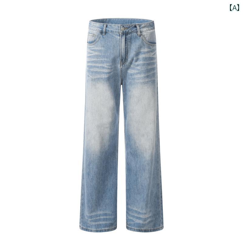 メンズ ファッション 春夏 秋冬 かっこいい オシャレ モテ 男性用 紳士服 服 韓国 シンプル 大人 アメリカ トリート レトロ ウォッシュ キャット ウィカー ダメージ 加工 イト ルー ジーンズ メンズ トレート カジュアル モ ッピング ロング パンツ
