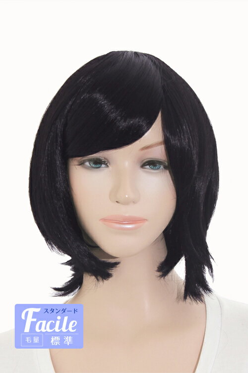 ウィッグ ショートボブ 黒 【チャコールブラック】【ウィッグネット付】コスプレウィッグ 耐熱 コス パーティー コスチューム セール 激安 変装 仮装 アニメ 学園祭 新年会【スワローテイル】(017 bo-m2)