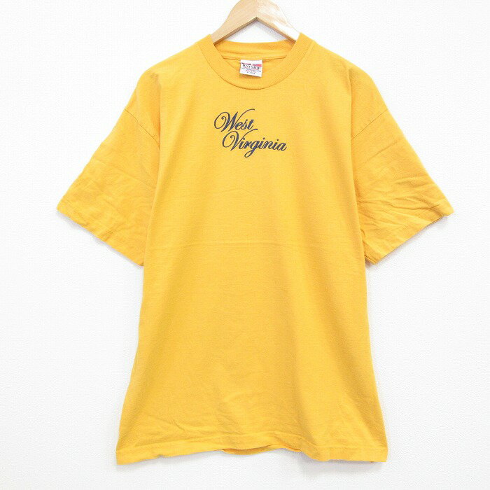 【中古】古着 半袖 ビンテージ ヴィンテージTシャツ メンズ 00年代 00s ウエストバージニア 刺繍 コットン クルーネック 丸首 USA製 アメリカ製 濃黄 イエロー XLサイズ 中古 | 春夏 夏物 夏服 ヴィンテージTシャツ メンズファッション カットソー ティーシャツ