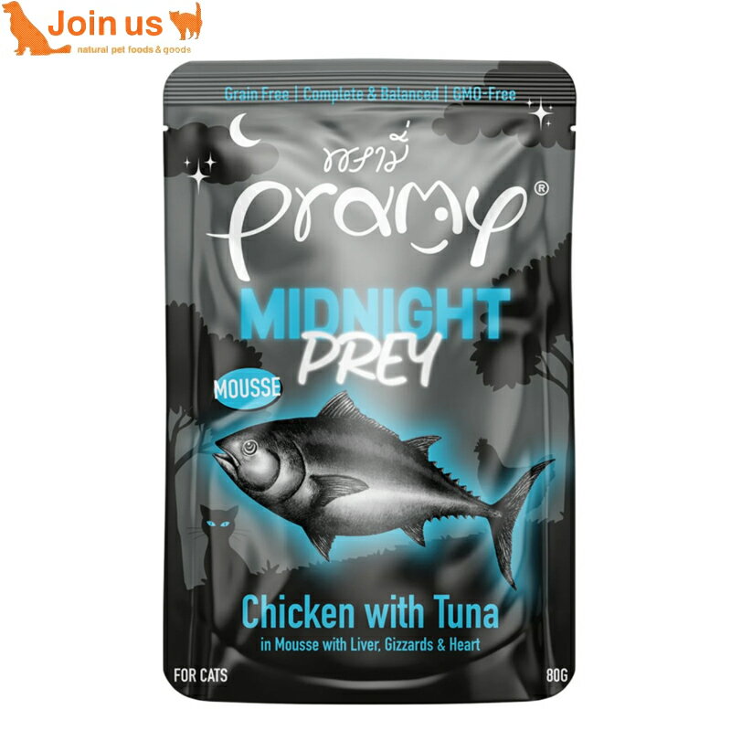 プラミー ミッドナイト 総合栄養食 チキンツナムース 80g キャットフード ウェットフード パウチ 穀物不使用 グレインフリー 塩・砂糖不使用 猫 1歳以上 成猫