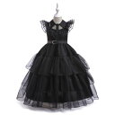 ワンピース キッズ 女の子 子供 ガールズ アダムスファミリー ウェンズデー ゴシック 黒 ブラック チュール コスプレ パーティー ドレス 仮装 ハロウィン イベント 礼服