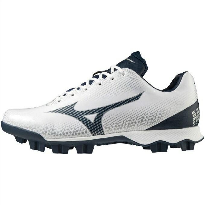 10/15限定★抽選で最大100%Pバック 【P革加工可能】 ミズノ ウエーブ ライトレボ 11GP222114 メンズ 野球 スパイクシューズ 3E : ホワイト×ネイビー MIZUNO