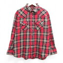 【中古】古着 長袖 ウエスタン フランネルシャツ メンズ 大きいサイズ 2L LL ビッグシルエット ゆったり ビッグサイズ オーバーサイズ コットン エンジ系他 チェック XLサイズ 中古 トップス | 秋冬 秋物 秋服 冬物 冬服 カジュアルシャツ メンズファッション 長