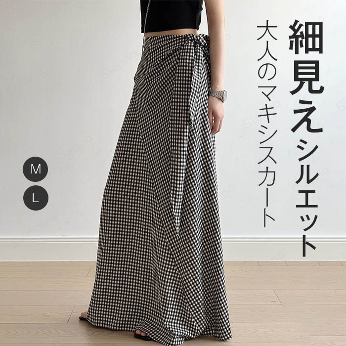 マキシスカート マキシ スカート レディース ボトムス チェック 総柄 柄 チェック柄 ウエストリボン リボン 大きいサイズ ロングスカート フレアスカート ロング丈 マキシ丈 Aライン マーメイド ハイウェスト タイト 春 夏 脚長 体型カバー トレンド感 カジュアル