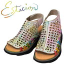 estacion エスタシオン F10-1 レディース サンダル 本革 パンチング 厚底 バックストラップ 幅広 ウェッジソール カラフル 安定感 お洒落 歩きやすい 疲れにくい マジックテープ レザーシューズ アイボリー /SB/MR