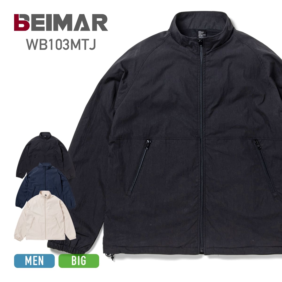 BEIMAR ビーマー ウォーターリパレント ライントラックジャケット BMWB103MTJ / Water Repellent Lined Track Jacket トレーニングジャケット セットアップ可 アウター 撥水 羽織り 上着 ジャンパ メンズ カジュアル ストリート