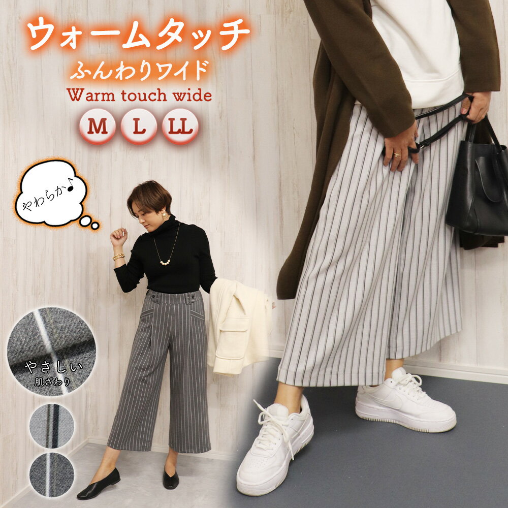 【11/27 01:59まで★とくとくクーポン配布中】【在庫処分1500円off】【在庫限り】微起毛 パンツ あったかパンツ レディース 大きいサイズ ワイドパンツ ストライプ きれいめ 美脚 ウエストゴム レディースボトムス ズボン 春 秋 No.624/M/L/LL/e-bottoms aw