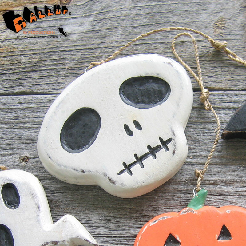 ウッドカービング スカル 【ハロウィン】[ネコポス可]【飾り 手作り ドクロ ガイコツ アンティーク調 木製 オーナメント 店舗装飾 ディスプレイ 玄関 飾り付け ガーランド パーティー 小物 雑貨】