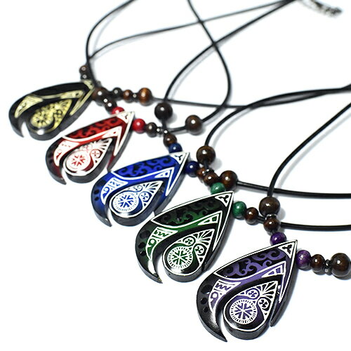 アイヌ紋様 エリマキ 彫刻 しずく ネックレス 5色 ウッドカービング カムイ 神威 北海道 手彫り ペンダントトップ 和柄【メール便対応可】