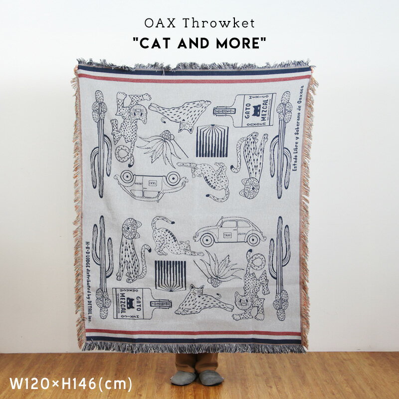 OAX Throwket "Cat and more / Gray" オアハカ スローケット "キャット アンド モア / グレー" | HERE ヒアー W120×H146cm 大判 ブランケット キャット ネコ メキシコ オアハカ ウッドカービング 膝掛け ひざかけ タオルケット ガーゼケット キルトケット detail