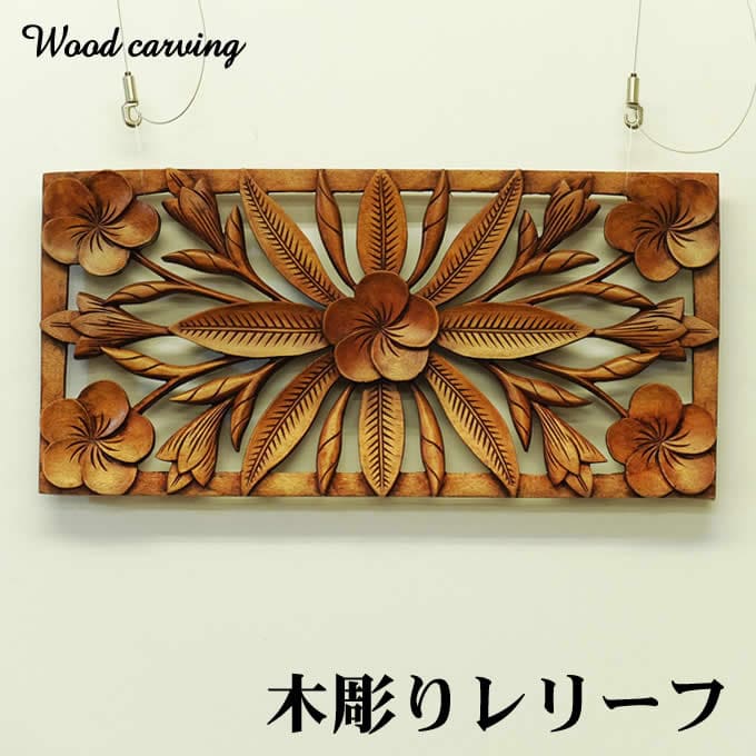 【スーパーセール】30 木彫り レリーフ プルメリア 24x48 フラワーパネル アジアン スパ サロン レストラン ウッドカービング アートパネル バリ インテリア おしゃれ 飾り 壁飾り 卓上 木製 彫刻 オブジェ モダン
