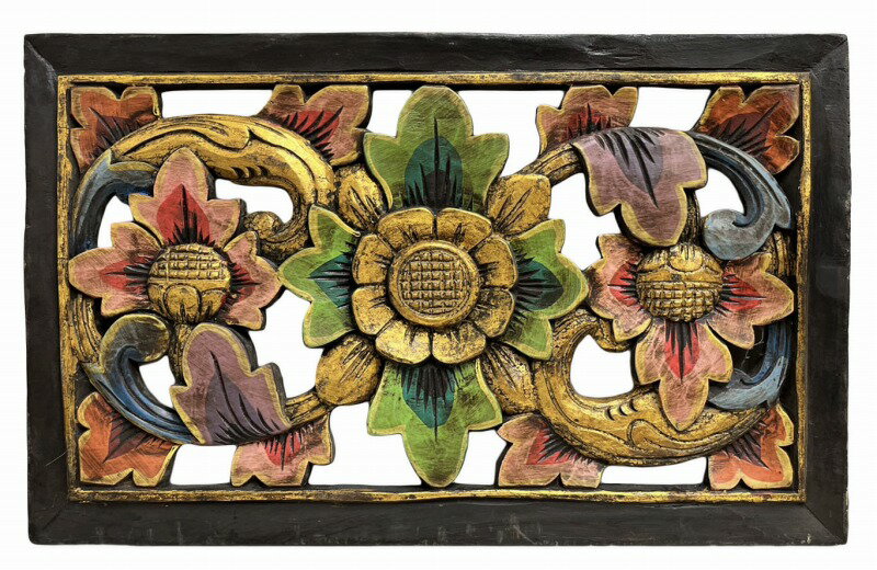 アンティークウッドカービング50 ゴールド花デザイン枠黒【バリ直輸入】【木彫り】【おしゃれ】【アジアンインテリア】【透かし彫り】【バリ風インテリア】【手彫り】【壁掛け】【ウォールデコ】【バリ・アジアン雑貨バリパラダイス】
