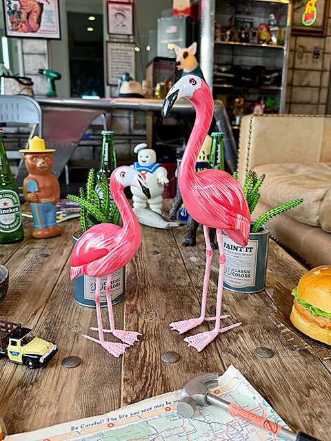 よく一緒に購入されている商品フィフティーズカー ブリキオブジェ Sサイズ 2,530円フィフティーズカー ブリキオブジェ Sサイズ 2,750円昔ながらの木のおもちゃを、当時の手法のままに木を削り出して仕上げたピンクフラミンゴの木彫り人形です。 アメリカのアンティークショップを訪れると、レジカウンターの横に置いてあるのを見かけた・・・・ そんなストーリー性を感じさせてくれるノスタルジックなところが魅力です。 1体ずつ手作りで仕上げていくので、どれも微妙に表情が違って、どんな子たちがやって来るのかドキドキしながら待つのも、この木彫り人形の楽しみの一つです。 アンティーク系の雑貨とも相性抜群ですので、それこそアンティークショップのようなシーンをイメージして、部屋を飾り付けて行くなんて楽しそう! このピンクフラミンゴを見て、何か惹かれるものを感じたなら、ぜひ連れて帰ってやってくださいな(〃 ̄▽ ̄〃) サイズ:横10cm×縦10cm×高さ20cm(Sサイズ) 材質:ウッド サイズ:横10cm×縦12cm×高さ30cm(Lサイズ) 材質:ウッド ※こちらは大小2体セットでのお届けです。 【知っておいて頂きたいこと】 ヒビ割れ、キズ、汚れ、ハゲは在庫分すべてに見られますので製品仕様となります。またハンドメイドのため一つ一つ色合いや表情、風合いに個体差があります。予めご了承願います。類似商品はこちらピンクフラミンゴ 木彫り人形 単品 ウッドカ2,420円ピンクフラミンゴ 木彫り人形 単品 ウッドカ1,980円サーフワゴン ウッドオブジェ ウッドカービン2,200円幸せを呼ぶ鳥 フクロウ 木彫り人形 ウッドカー3,300円ハワイ州旗 ピンズ アメリカン雑貨 アメリカ638円ダルトン ウッデン アニマルヘッド アメリカ17,600円ハワイアン フラガールのレトロなぬいぐるみ ア3,850円フラミンゴカフェ ネオン管 アメリカン雑貨 ア49,500円パイナップル インフレータブル アメリカン雑貨660円新着商品はこちら2025/11/29ラットフィンク フェイスタオル アメリカン雑825円2025/11/29ラットフィンク フェイスタオル アメリカン雑825円2025/11/29Jada チートス チェスターチーター ダイキ3,960円再入荷はこちら2025/11/29コカ・コーラ エンボス ティンサイン コークグ4,620円2025/11/29ギャンブラー 木製看板 アメリカン雑貨 アメリ3,980円2025/11/29Mopar モパー ディーラー ウッドサイン 6,930円2025/11/29 更新