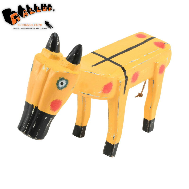 ウッドカービング ミニドンキー【 木彫り 置物 オブジェ 無垢 彫刻 ハンドメイド donkey ロバ ろば 動物 可愛い インテリア ディスプレイ バリ 雑貨 ウブド 黄色 個性的 カラフル ギフト プレゼント】