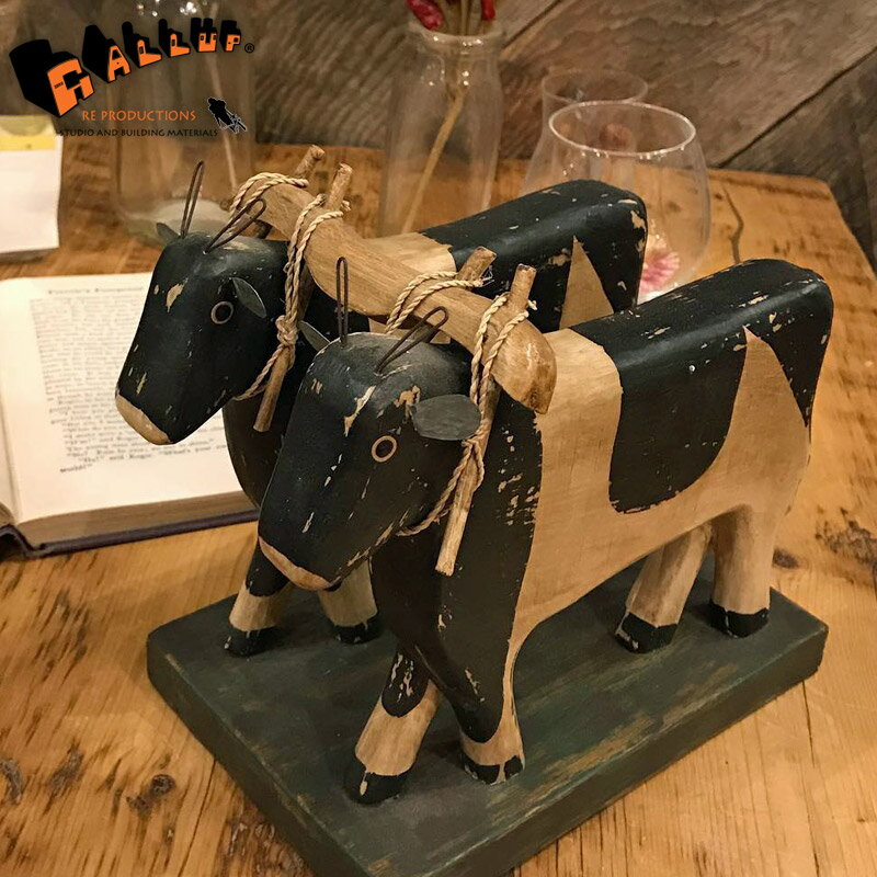ウッドカービング オックス #1 (ウォーク) 【木彫り 手作り 動物 アニマル 農耕牛 うし カウ 雄牛 アンティーク調 バリ島 オブジェ ディスプレイ 玄関 リビング インテリア雑貨 ギフト 素朴 】