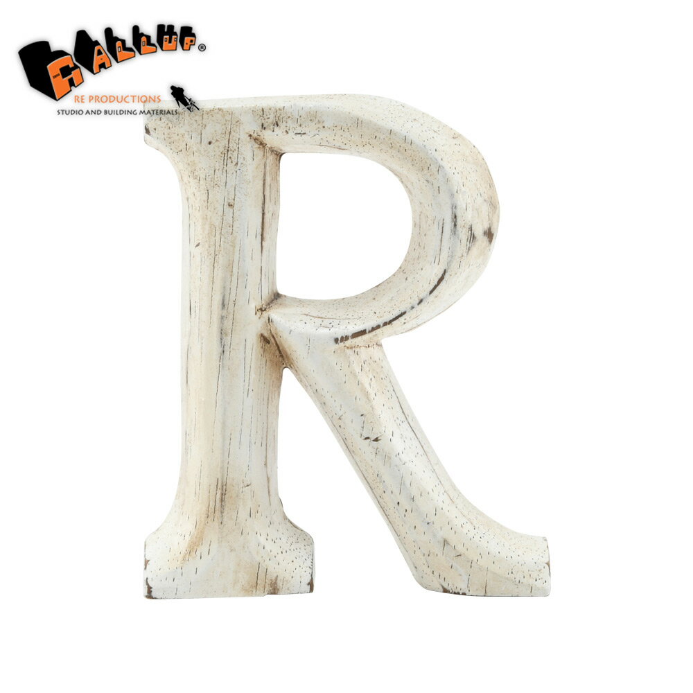 ウッドカービング レター 「R」[ネコポス可]【切り文字 英字 ローマ字 アルファベット 木彫り ウッド カービング ハンドメイド 白 ホワイト アンティーク パーツ 表札 看板 サイン 装飾】