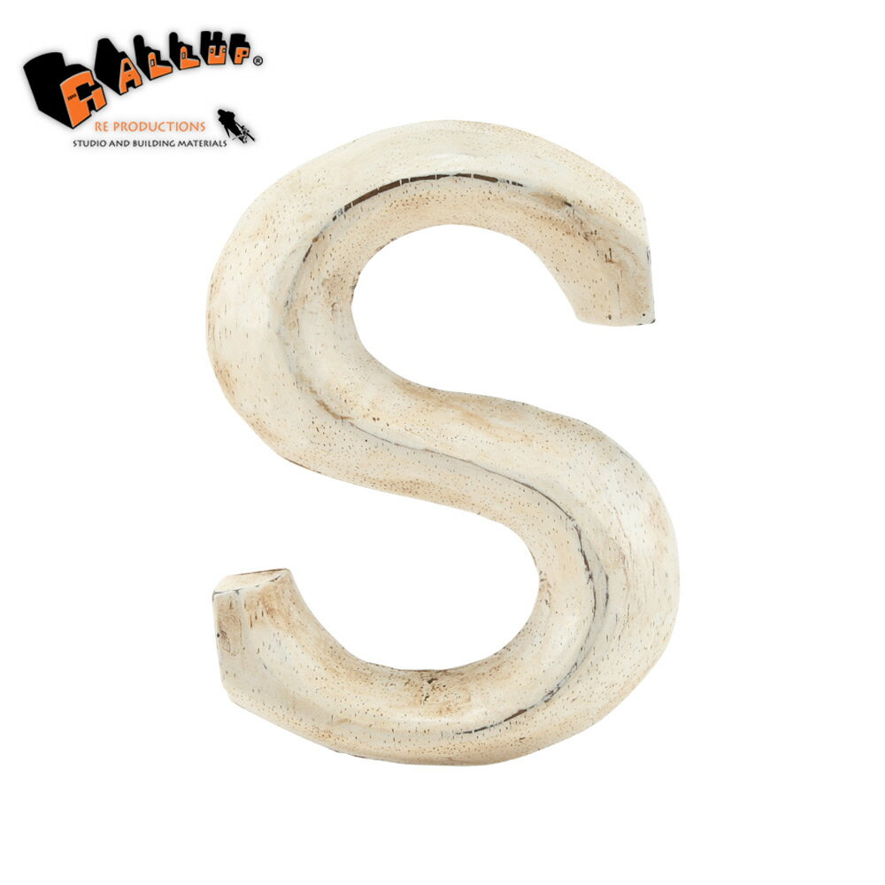 ウッドカービング レター 「S」[ネコポス可]【切り文字 英字 ローマ字 アルファベット 木彫り ウッド カービング ハンドメイド 白 ホワイト アンティーク パーツ 表札 看板 サイン 装飾】