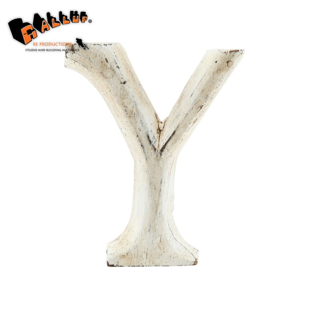 ウッドカービング レター 「Y」[ネコポス可]【切り文字 英字 ローマ字 アルファベット 木彫り ウッド カービング ハンドメイド 白 ホワイト アンティーク パーツ 表札 看板 サイン 装飾】