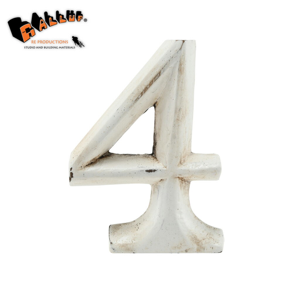 ウッドカービング レター 「4」[ネコポス可]【切り文字 ナンバー 数字 アルファベット 木彫り ウッド カービング ハンドメイド 白 ホワイト アンティーク パーツ 表札 看板 サイン 装飾】