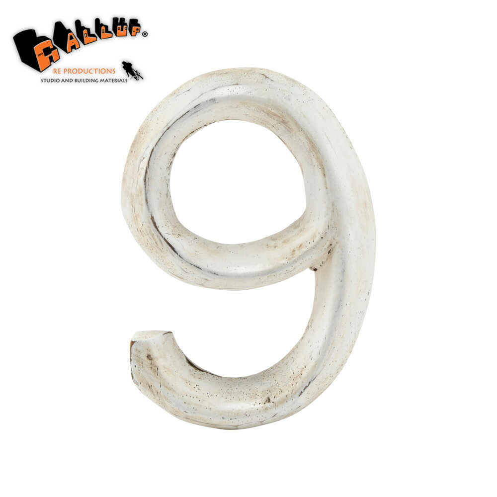ウッドカービング レター 「9」[ネコポス可]【切り文字 ナンバー 数字 アルファベット 木彫り ウッド カービング ハンドメイド 白 ホワイト アンティーク パーツ 表札 看板 サイン 装飾】