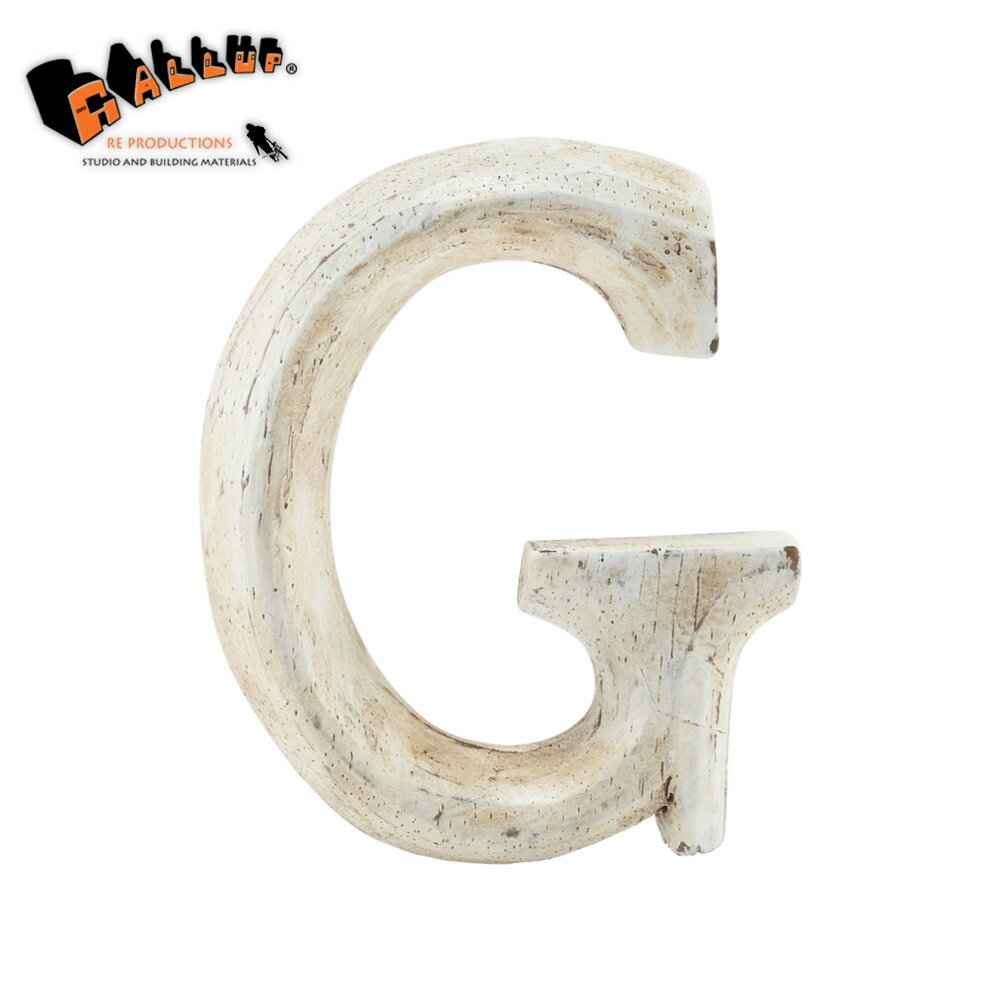 ウッドカービング レター 「G」[ネコポス可]【切り文字 英字 ローマ字 アルファベット 木彫り ウッド カービング ハンドメイド 白 ホワイト アンティーク パーツ 表札 看板 サイン 装飾】