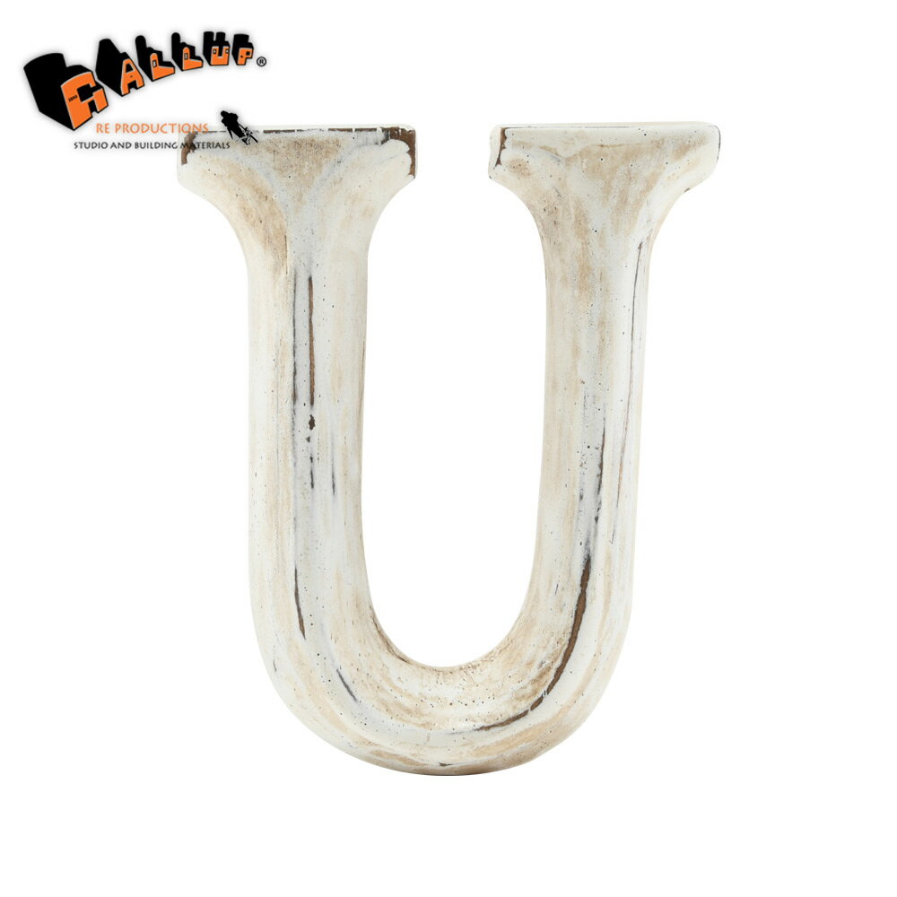 ウッドカービング レター 「U」[ネコポス可]【切り文字 英字 ローマ字 アルファベット 木彫り ウッド カービング ハンドメイド 白 ホワイト アンティーク パーツ 表札 看板 サイン 装飾】