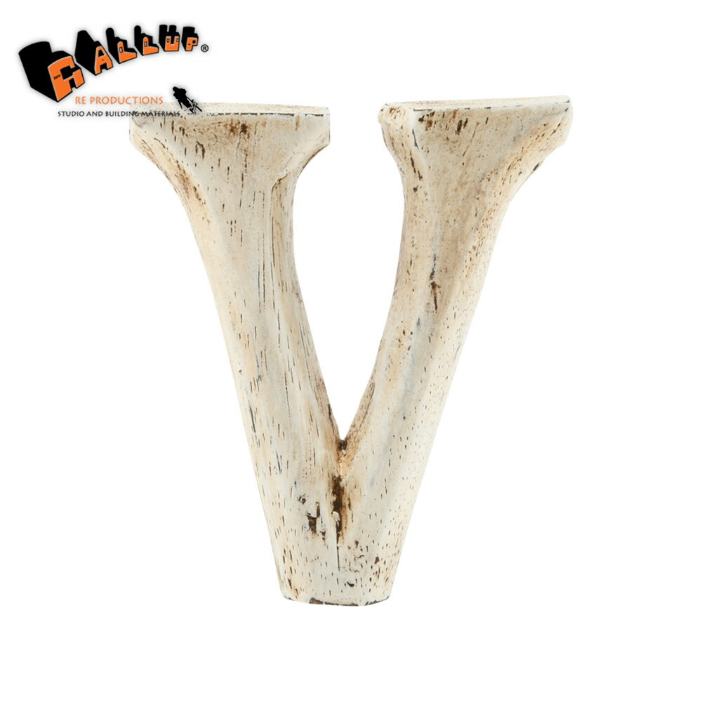 ウッドカービング レター 「V」[ネコポス可]【切り文字 英字 ローマ字 アルファベット 木彫り ウッド カービング ハンドメイド 白 ホワイト アンティーク パーツ 表札 看板 サイン 装飾】