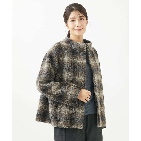 [型番:NGVAB22720]冬に映えるチェック柄のショート丈アウター<素材>イタリアのインポート生地です。多色の糸により織られて高級感があります。経糸にはリサイクル糸を使用しています。羊にやさしいノンミュールジング・ウールです。裏地にはキュプラを使用しています。ウールの吸湿発熱力に優れたアウターに最適な素材感です。<デザイン>チェック柄のインポート素材のジャケットです。前身頃は比翼釦明き仕様で、釦を隠しチェック柄が引き立つように仕上げました。低めのスタンドカラーとAラインシルエット、サイドのアウトポケットがデザインポイントです。後身頃にはBOXタックを入れ、背面から見てもかわいらしい印象に。使いやすいショート丈アウターです。<スタイリングポイント>スカートにもパンツにも合わせやすい丈感です。低めのスタンドカラーでマフラーとも合わせやすい◎。カジュアルなコーディネートにもサクッと羽織れば、チェック柄が映えておしゃれに纏めてくれます。シンプルになりがちな冬のファッションに重宝するアイテムです。----------------------------------------------------------------------------------------------------透け感:なし伸縮性:なし光沢感:なし裏地:あり生地の厚さ:厚手----------------------------------------------------------------------------------------------------model:H167 B80 W60 H85 着用サイズ:M■カラー:ベージュ、ダークグレーM:着丈59.0 身幅56.8 肩幅54.0 袖丈51.0 ゆき丈78.0 重量(g)758L:着丈59.5 身幅58.3 肩幅54.8 袖丈51.2 ゆき丈78.7 重量(g)-※( )で表記されている数字はヌードサイズです。ヌードサイズとは衣服を身につけない身体のサイズです。お客様ご自身の身体サイズと比較してお選びください。 ■素材: ベージュ/ダークグレー:表地 ウール 40% ポリエステル 31% アクリル 11% アルパカ 10% ナイロン 6% レーヨン 1% コットン 1% 裏地 キュプラ ■お手入: >>商品のお取り扱い方法 ■原産国: 日本[日本製]ITALYミックスウールチェックジャケット/ジャンニ・ロ・ジュディチェ(GIANNI LO GIUDICE)ベージュダークグレー画面上と実物では、多少色具合が異なって見える場合がございます。