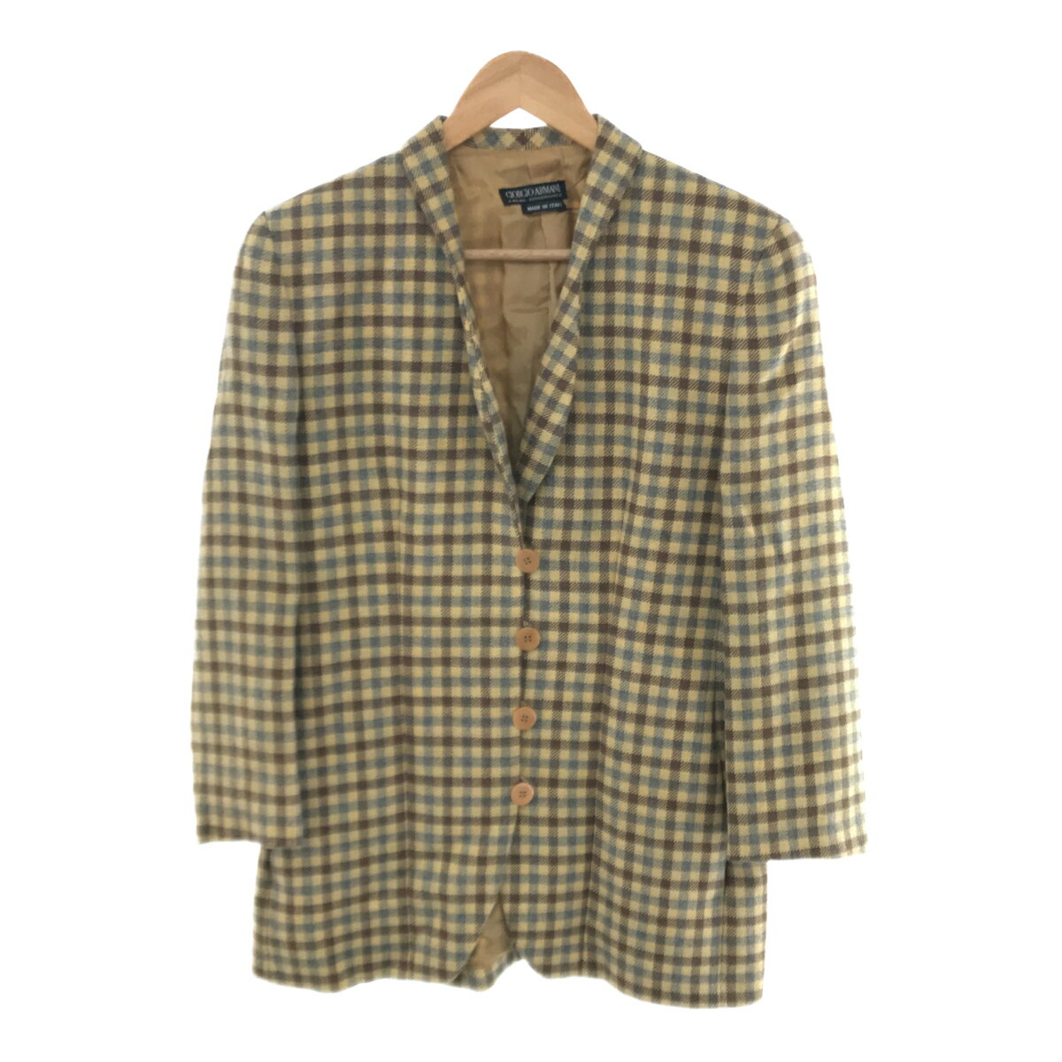 Giorgio Armani ジョルジオアルマーニ ウールチェックジャケット アウター トップス イエロー ブラウン グレー総柄 イタリア製 サイズ42 レディース 三国ケ丘店 ITTDKD7CXJR8 【中古】 RM0730R
