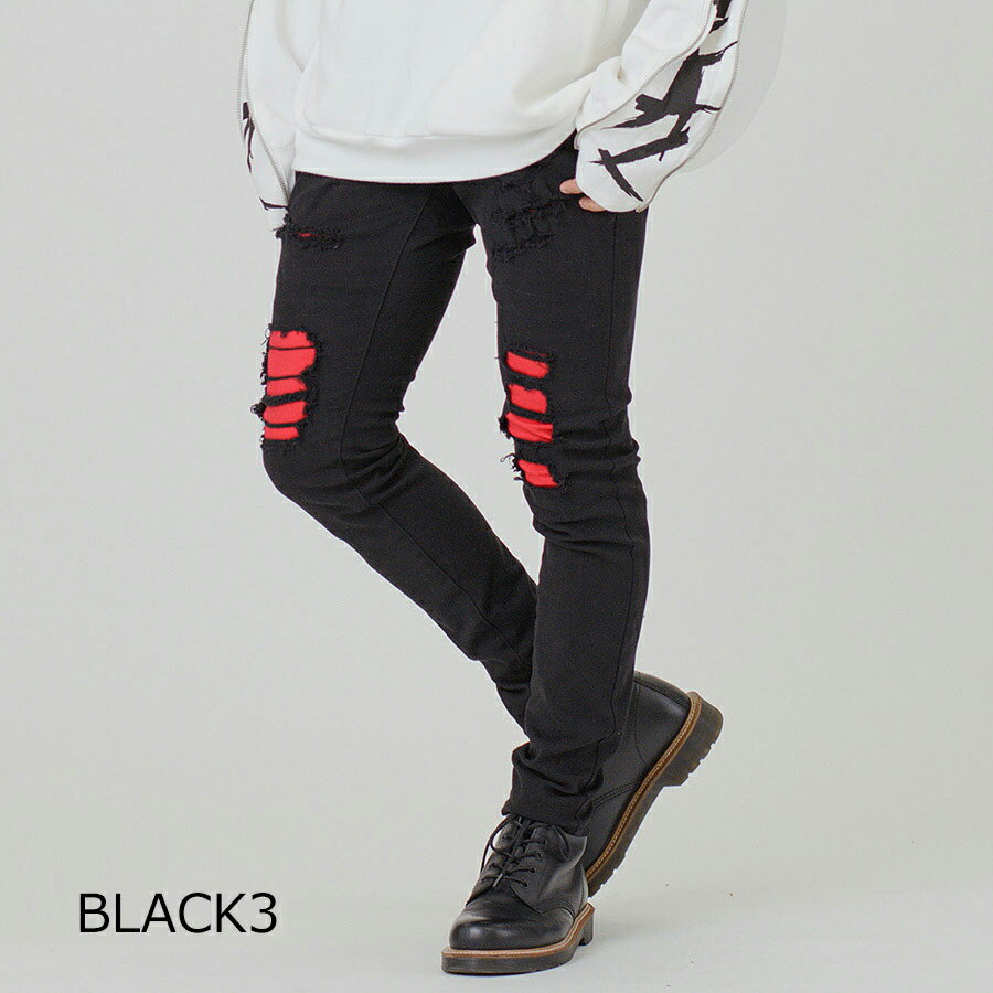 ジーンズ メンズ スキニー S M L 29 30 31 黒 ブラック ストレッチ ダメージ ライン クラッシュ 春夏秋冬 RE730 セブンサーティー hk エイチケー 92534
