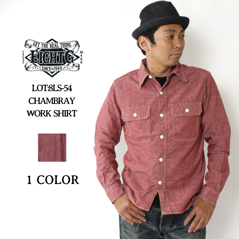 【16日23:59まで!エントリーでP最大5倍】 エイトジー シャンブレーシャツ メンズ ヴィンテージ 日本製 長袖 綿100 国産 おしゃれ 大人 アメカジ ブランド 赤 レッド EIGHT-G CHAMBRAY WORK SHIRT 8LS-54