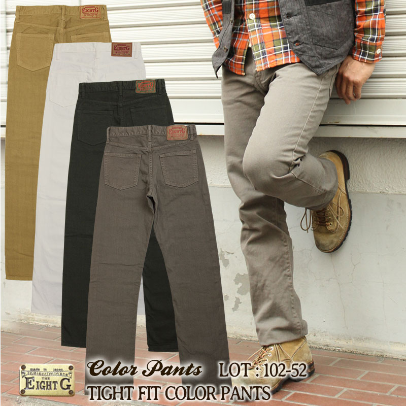 【16日23:59まで!エントリーでP最大5倍】 日本製 カラーデニム メンズ アメカジ タイトストレート 細め ホワイト ベージュ モカ ブラック スリム ジーパン パンツ デニム 国産 おしゃれ 大人 エイトジー EIGHT-G 102-52