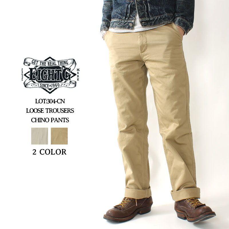【16日23:59まで!エントリーでP最大5倍】 エイトジー チノパン メンズ ゆったり 日本製 アメカジ ルーズ 太め 股上深め アーミートラウザーズ ウエポン コットン おしゃれ 大人 アメカジ EIGHT-G 304-CN