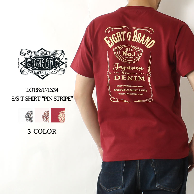 【16日23:59まで!エントリーでP最大5倍】 エイトジー Tシャツ 2025春夏 再入荷 メンズ アメカジ 半袖 カットソー プリント 大人 30代 40代 50代 綿100 EIGHT-G PIN STRIPING DESIGN 8ST-TS34