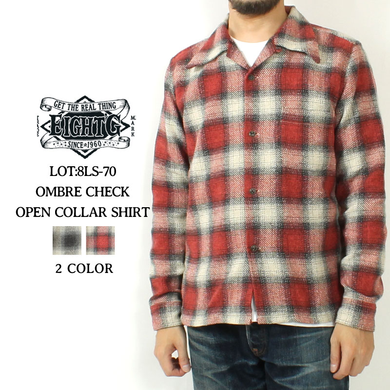 エイトジー ワークシャツ オープンカラー 2024秋冬 新作 オンブレチェック メンズ 日本製 シャツ 長袖 アメカジ ワークシャツ フランネルシャツ 開襟 50s ヴィンテージ 国産 おしゃれ 大人 EIGHT-G JAZZNEP OMBRE CHECK OPEN COLLAR SHIRT 8LS-70