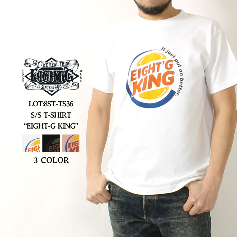 【16日23:59まで!エントリーでP最大5倍】 エイトジー Tシャツ プリント 2024春夏 新作 ロゴ 半袖 綿100 シンプル ヘビーウェイト クルーネック メンズ アメカジ 大人 おしゃれ ギフト EIGHT-G EIGHT-G KING 8ST-TS36