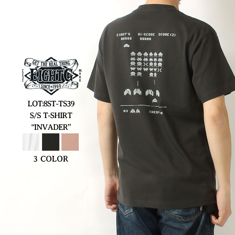 【16日23:59まで!エントリーでP最大5倍】 エイトジー Tシャツ プリント 2024春夏 新作 ロゴ 半袖 綿100 シンプル ヘビーウェイト クルーネック メンズ アメカジ 大人 おしゃれ ギフト EIGHT-G INVADER 8ST-TS39