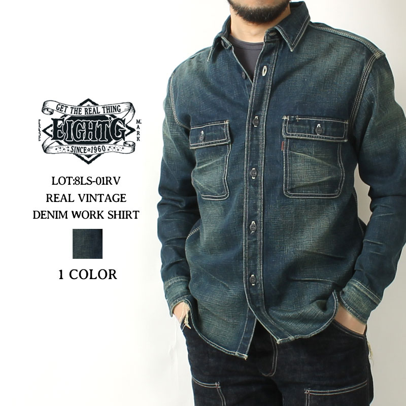 【16日23:59まで!エントリーでP最大5倍】 ワークシャツ シャツ 長袖 メンズ アメカジ デニム ユーズド加工 国産 日本製 おしゃれ 大人 エイトジー EIGHT-G INDIGO DENIM WORK SHIRT 8LS-01RV